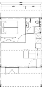 Het woonoppervlak heeft een breedte van 5 meter en een lengte van 5,86 meter