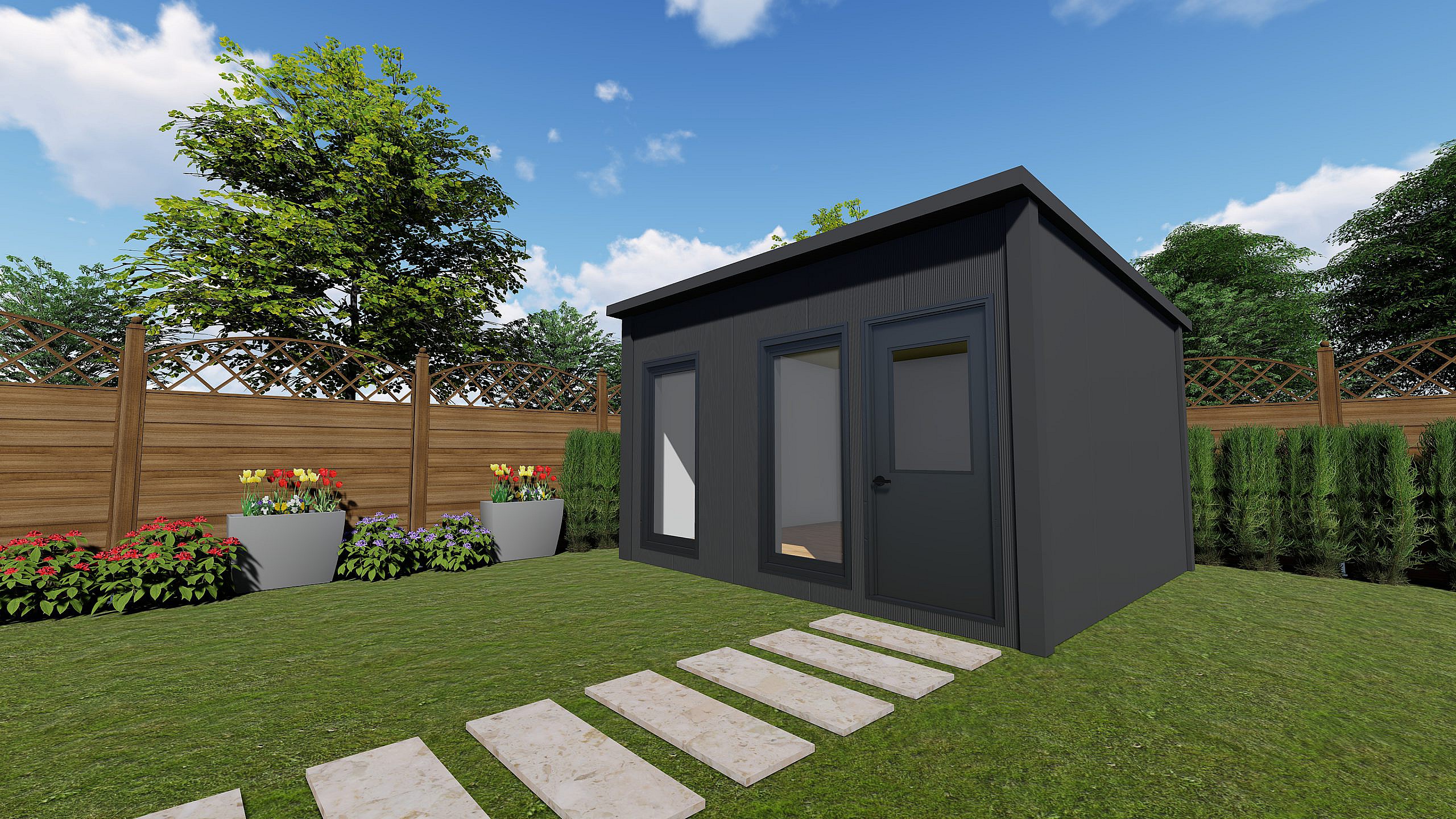 Aantrekkelijk geprijsde constructies die u zelf in uw eigen tuin kunt (laten) plaatsen. U bent daarna uiteraard volledig vrij om de binnenzijde van het kantoor naar uw eigen smaak in te richten.