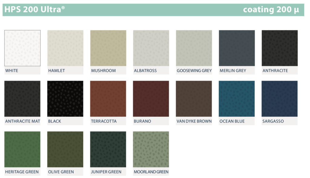 Bij een polyester coating zijn de volgende kleuren beschikbaar: